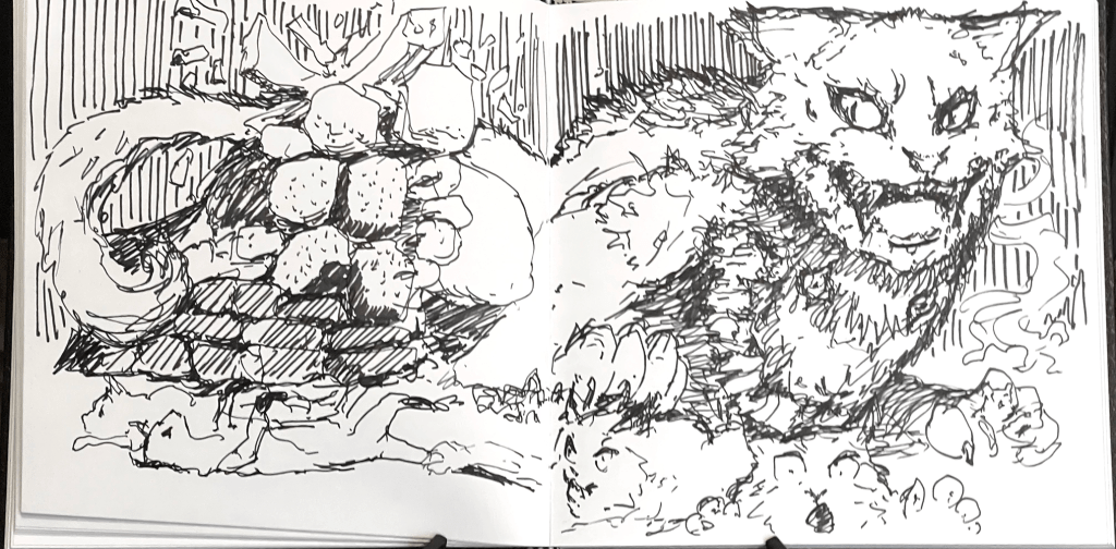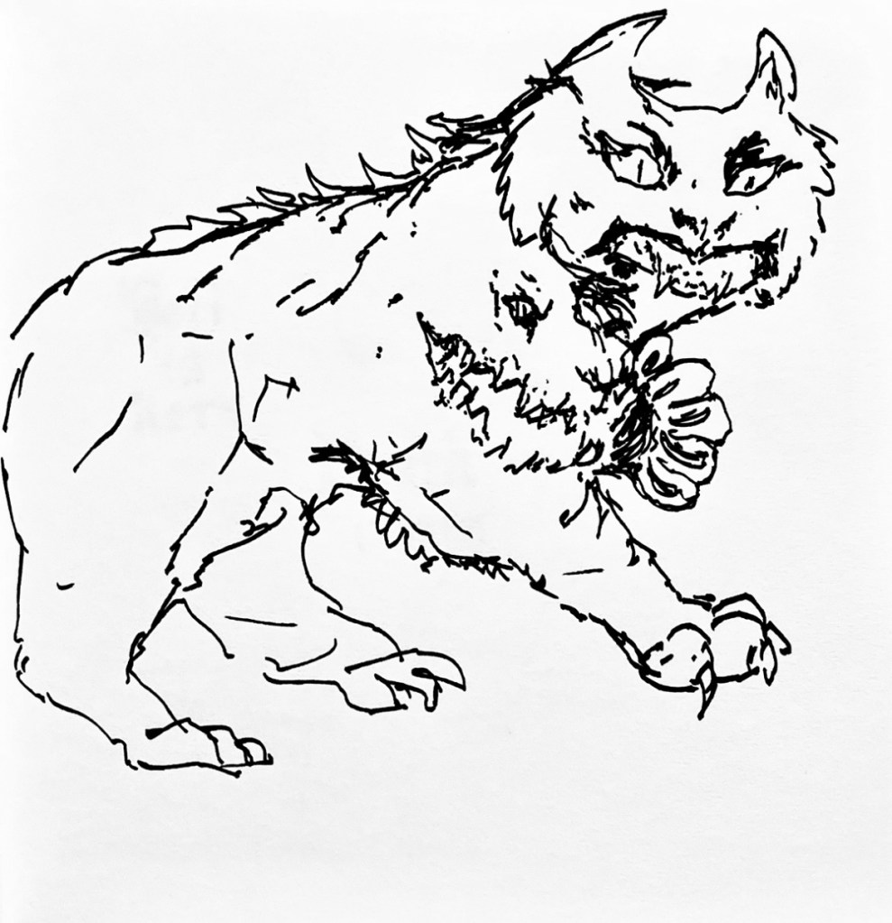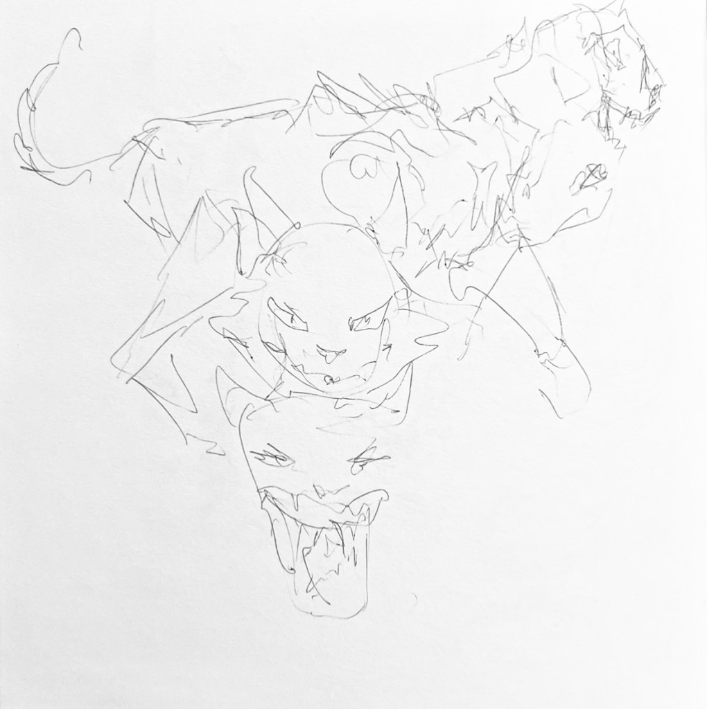 Made as part of Justin Gerard’s Let’s Draw Monsters competition in August. The prompt was to combine: Two headed, Gnawing, Chaotic and Cat.