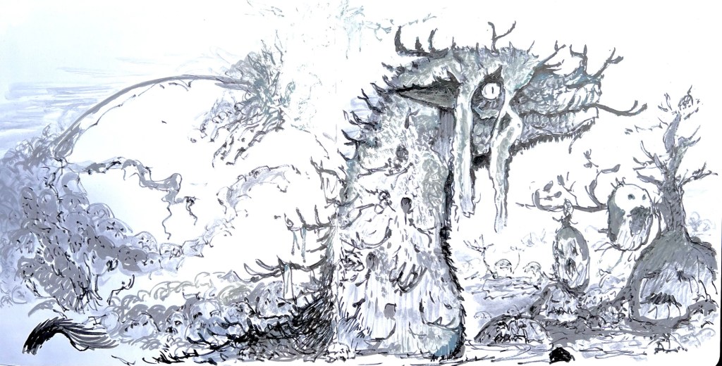 This Autumn Serpent was made as part of Justin Gerard’s October “Let’s Draw Monsters” challenge. Color was added after the 2 hour event.