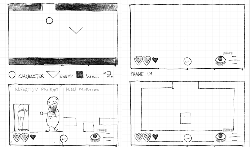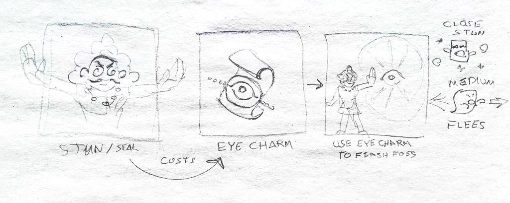 I designed the UI in tandem with critiques from Anshe Hsiao, Peter Clifford, Nyx Gonzalez, and Felipe Martinez to match concept and usability. Storyboards were critical to explaining the concept of items and UI to the rest of the team.